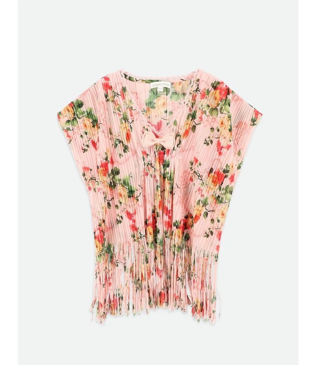 Angel's Face kaftan voor meisjes in een zachte roze kleur, verfraaid met een prachtige bloemenprint. Licht en luchtig, ideaal voor zonnige dagen en een elegante, ontspannen uitstraling.