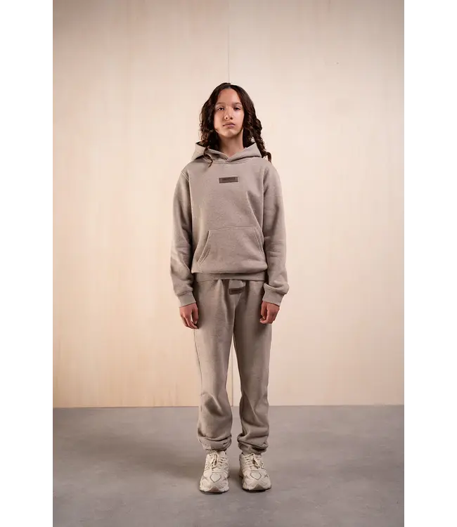 De hoodie heeft een clean, minimalistisch design met een zacht aanvoelende binnenkant, terwijl de broek is afgewerkt met een elastische tailleband en matching rubber branding op de pijp. De regular fit zorgt voor ultiem draagcomfort zonder in te leveren op stijl — ideaal voor schooldagen, weekendlooks of gecoördineerde streetwear‑outfits.