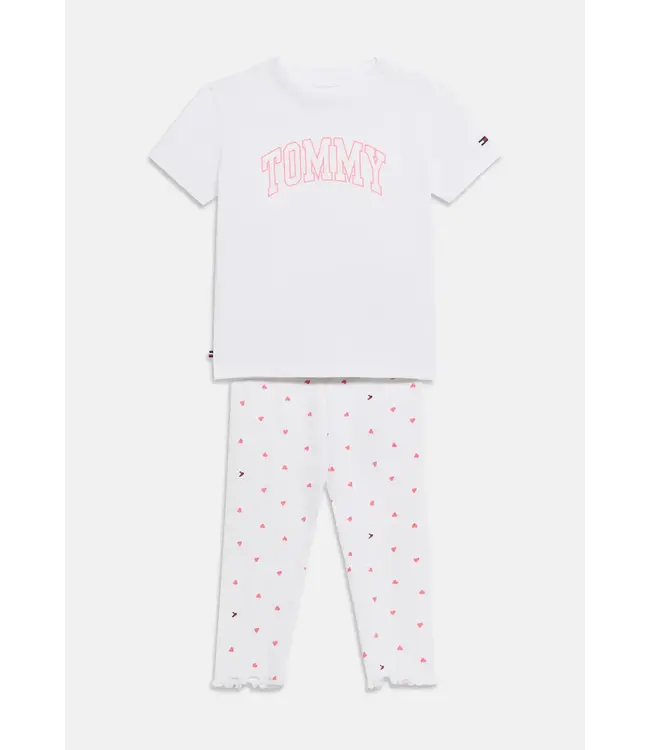 Het design is clean en minimalistisch, afgewerkt met het Tommy Hilfiger‑vlaglogo op de borst. De unisex pasvorm maakt deze set geschikt voor zowel jongens als meisjes — een echte must‑have basic voor elke garderobe.